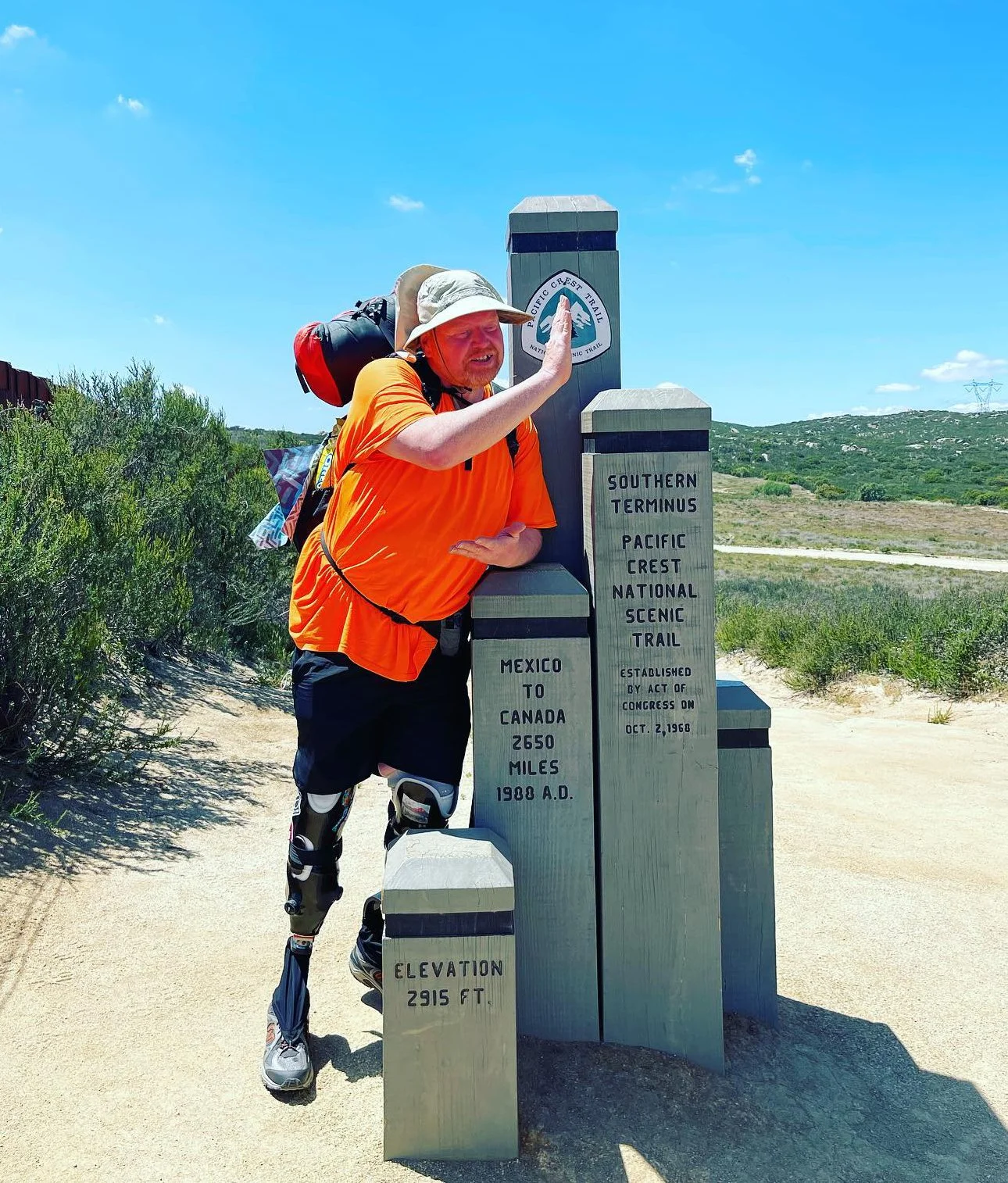 Kim Acheson’s story starts back in 2018 when he had his first amputation below the knee. A year later, he underwent his second below knee amputation. Such a devastating change might lead to depression for some, but a spark of inspiration went off in Kim. This would not be the end for him. After rehab and learning to walk again, he started training for a 5k race. Soon he was walking 20 miles a day and he had lost over 100 pounds. Wanting an even grander goal, Kim decided he would hike from Mexico to Canada on the Pacific Crest Trail, 2,650 miles of rugged trail with some of the most amazing scenery in the US.