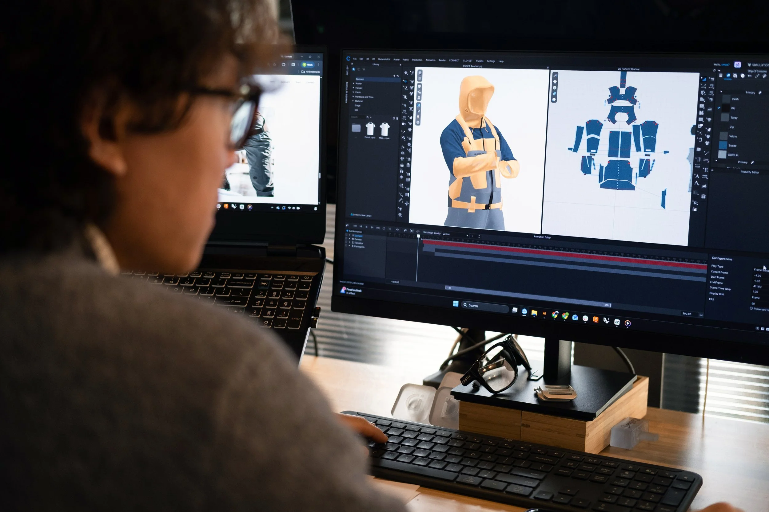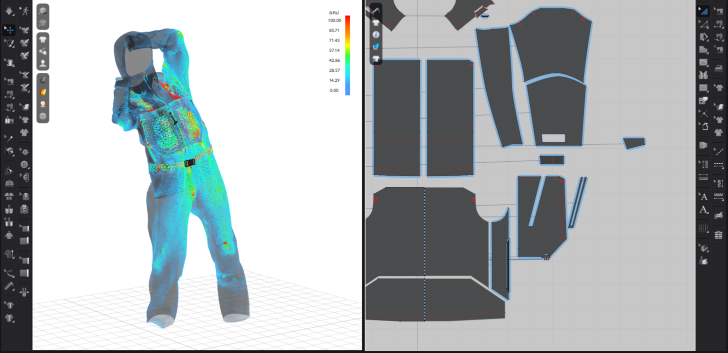 Like any new tool, there is a learning curve. A baseline foundation of sewing, patterning and general construction goes a long way. Having expert-level knowledge isn’t a barrier to getting started. Once you get beyond the fascination of the realtime fabric simulation (it’s mind boggling how accurate it is) there are some really useful features - size grading, customizing the avatar for specific fit guides, exploring CMF options, etc. We regularly find ourselves building out our initial “sketches”, moving through various rounds of refinement, and continuously moving back and forth between the digital and analogue.