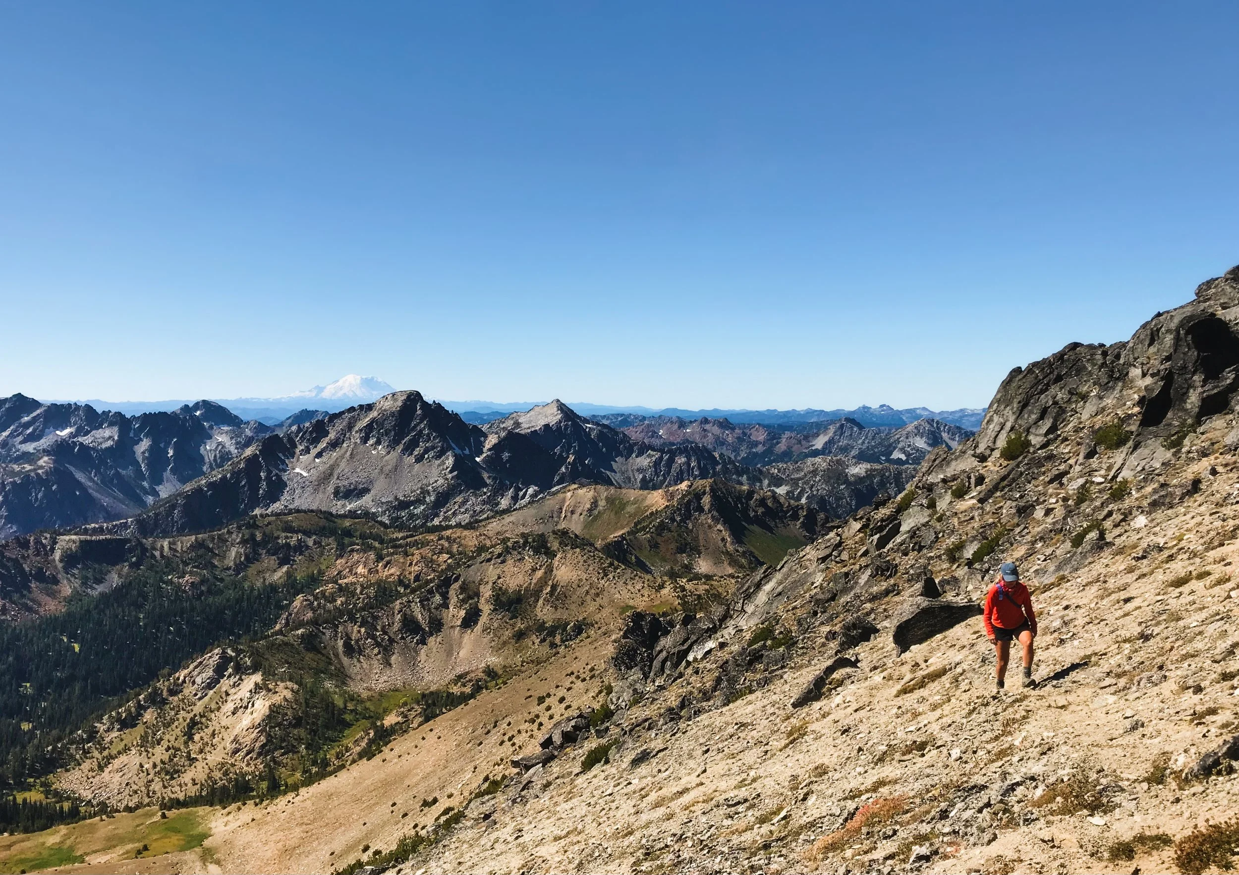 Linsey roaming ridge lines in the Goat Rocks.